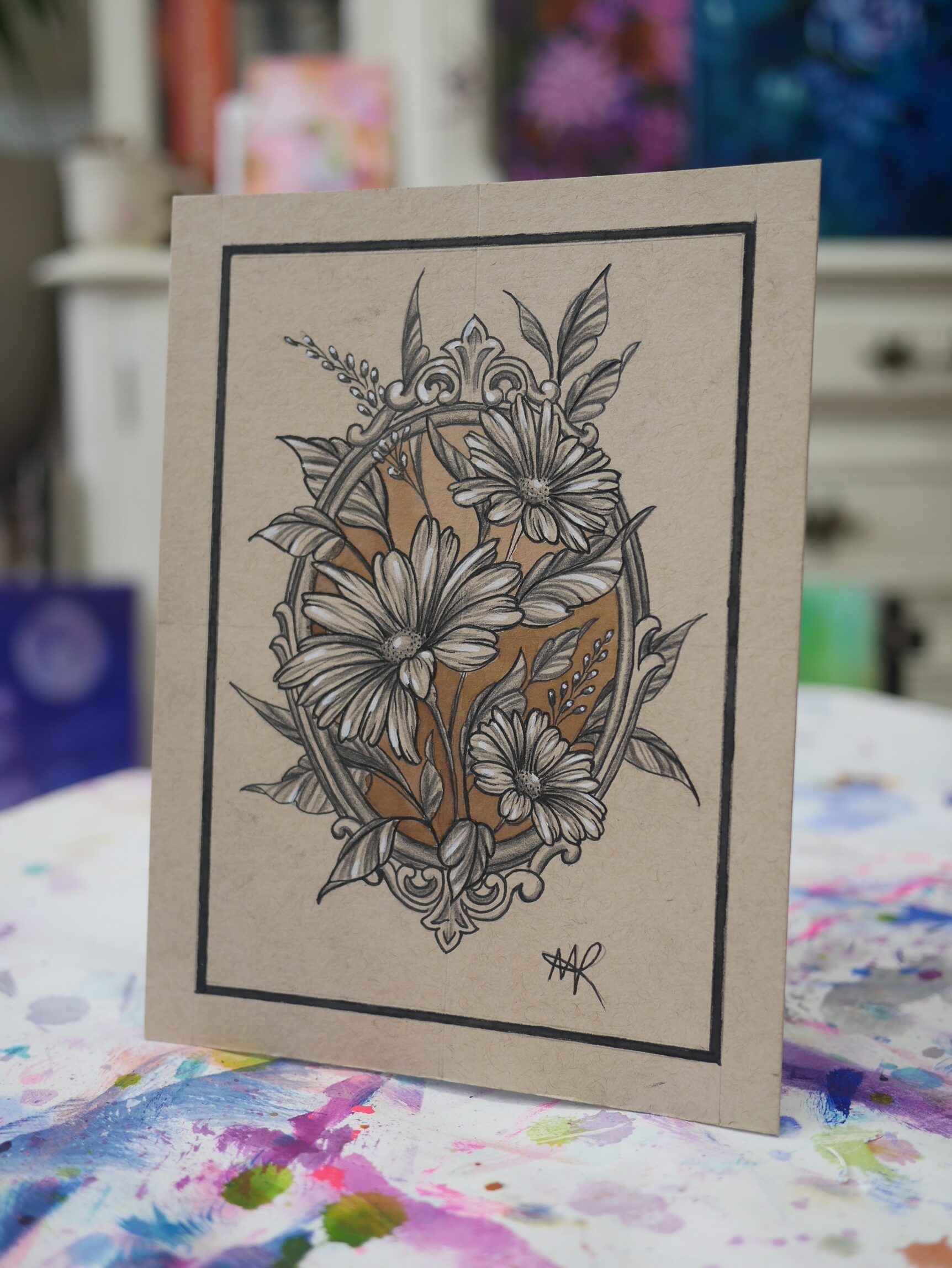 6×8 original mixed media drawing on 184lb (300 g/m) toned tan paper