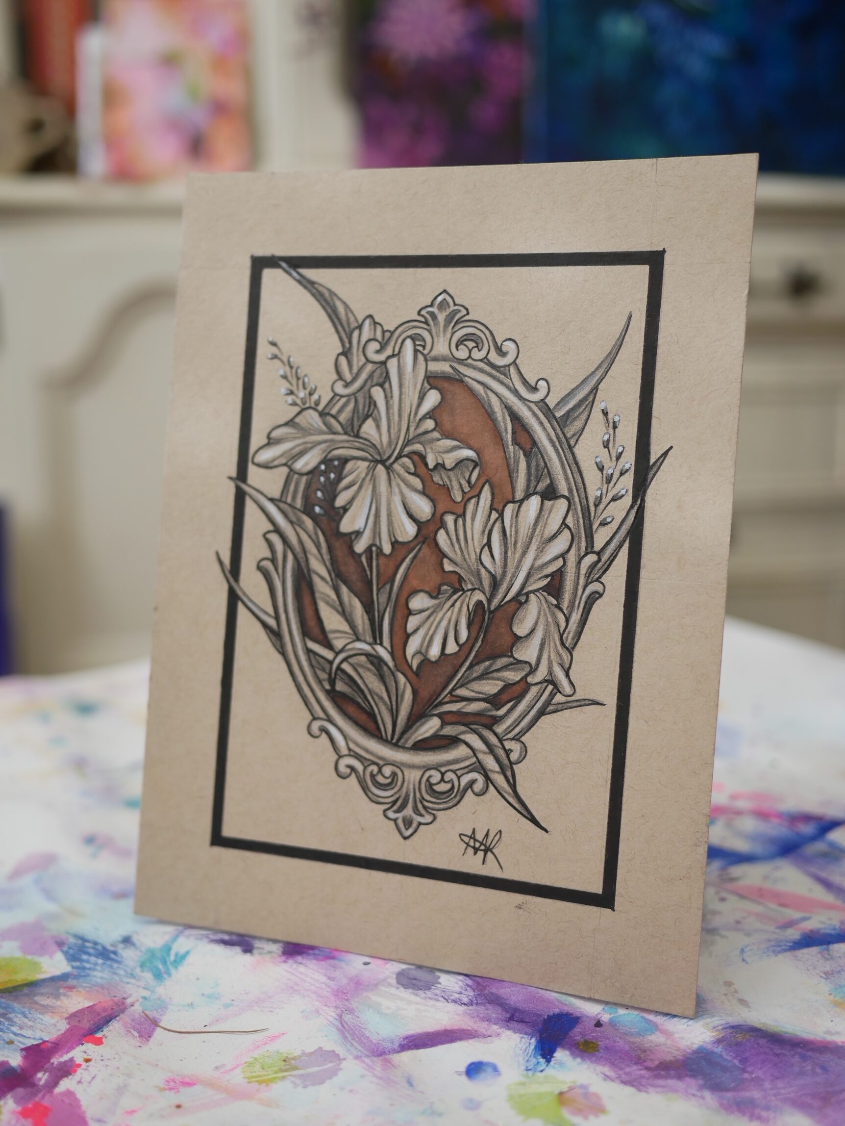 irises in a frame – original drawing